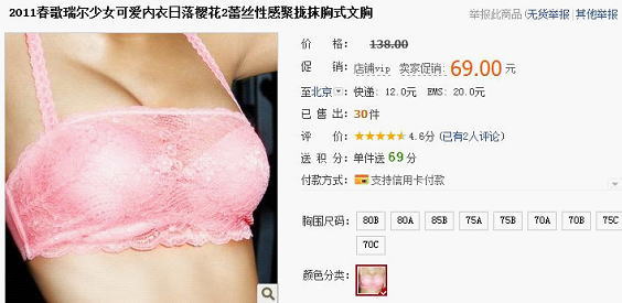 タオバオ版ピーチジョン、かわいらしい下着で今夜彼女は勝負!