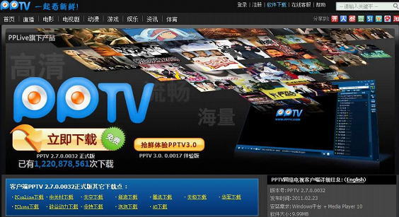 PPTVウエブは中国PPLive会社グループの一員で、P 2 PでのウェブTVのソフトウェアを利用して画像を見ることができます。「中継+リクエストオンデマンド放送」の機能を有しています。